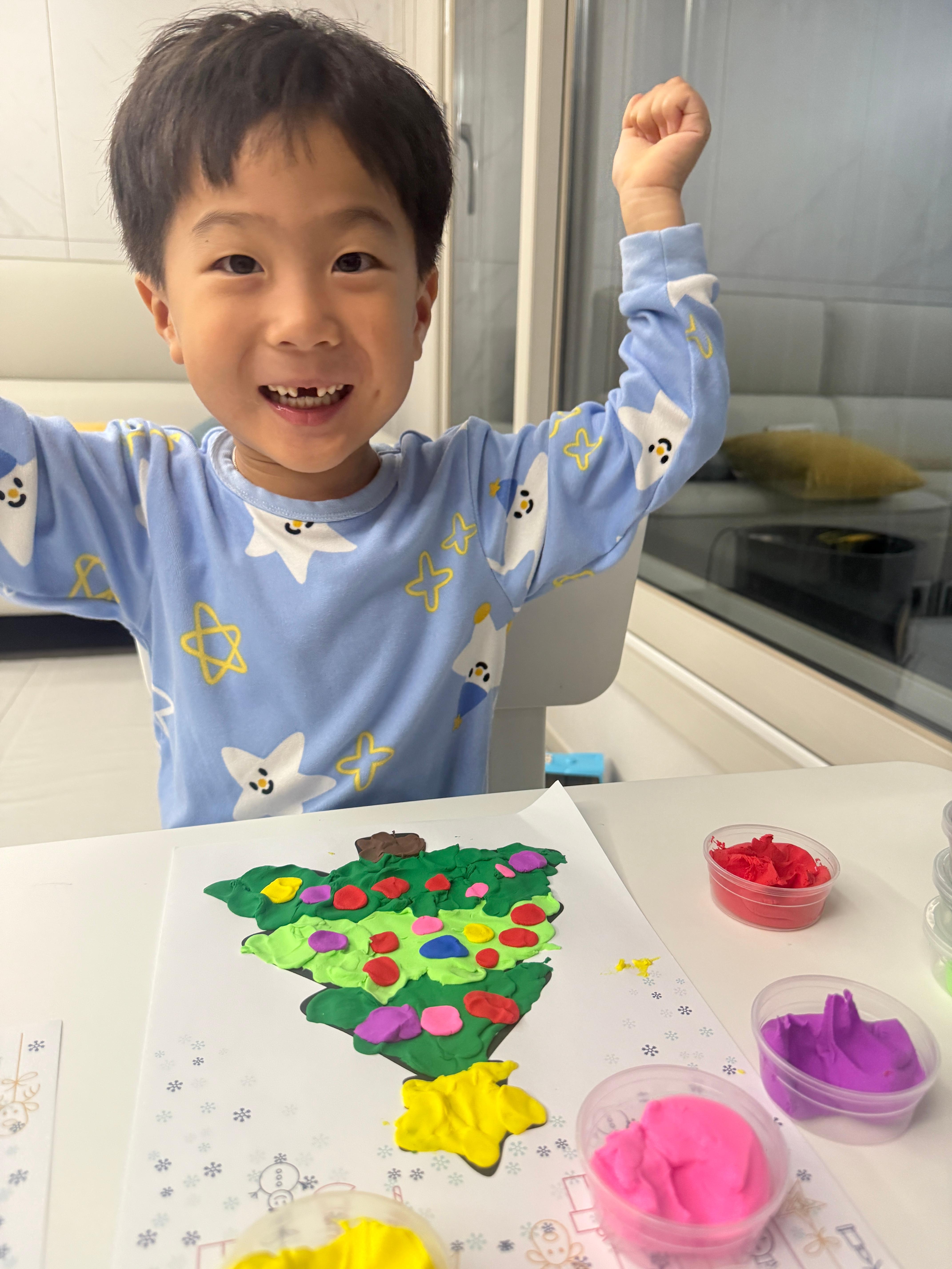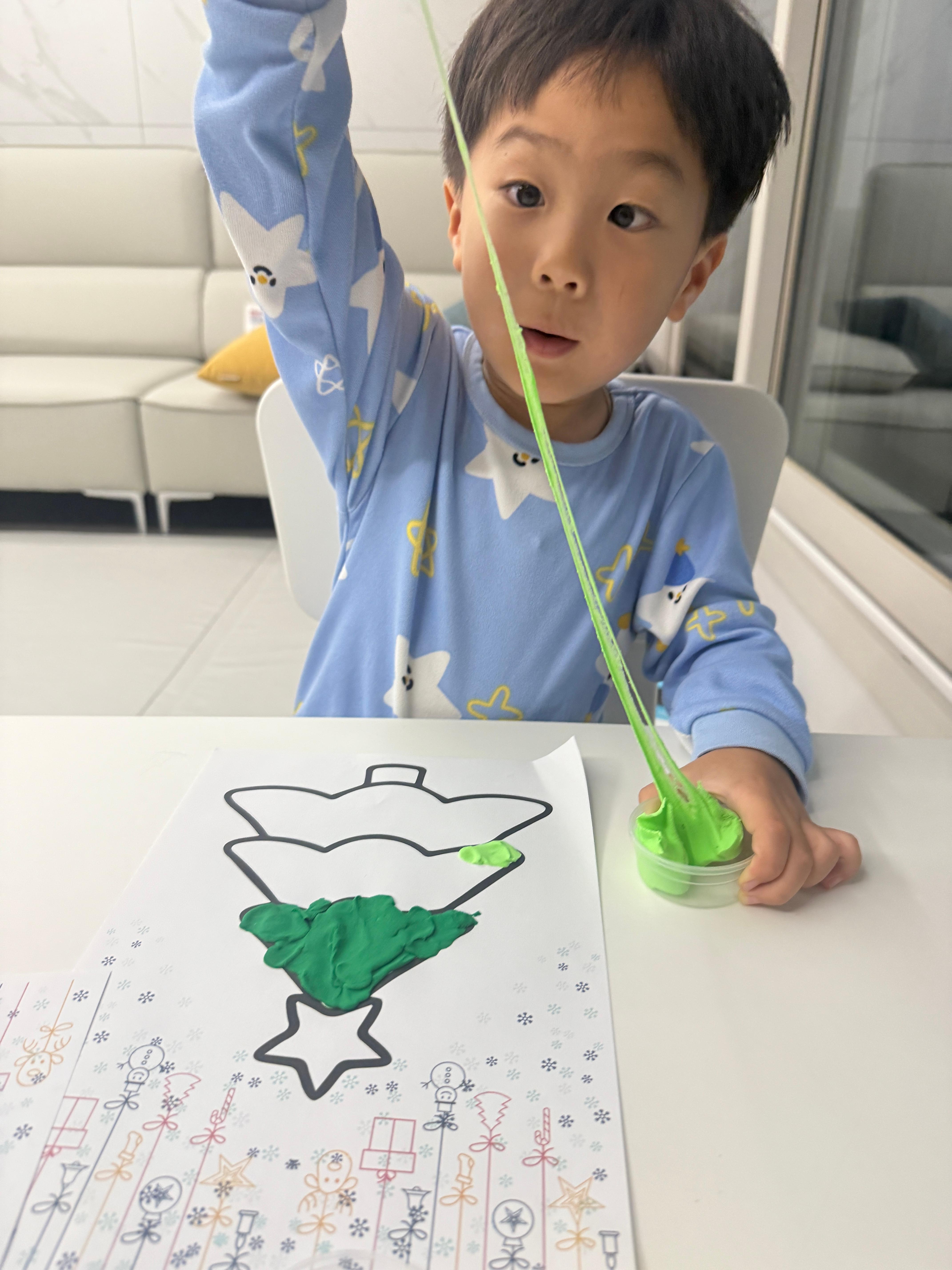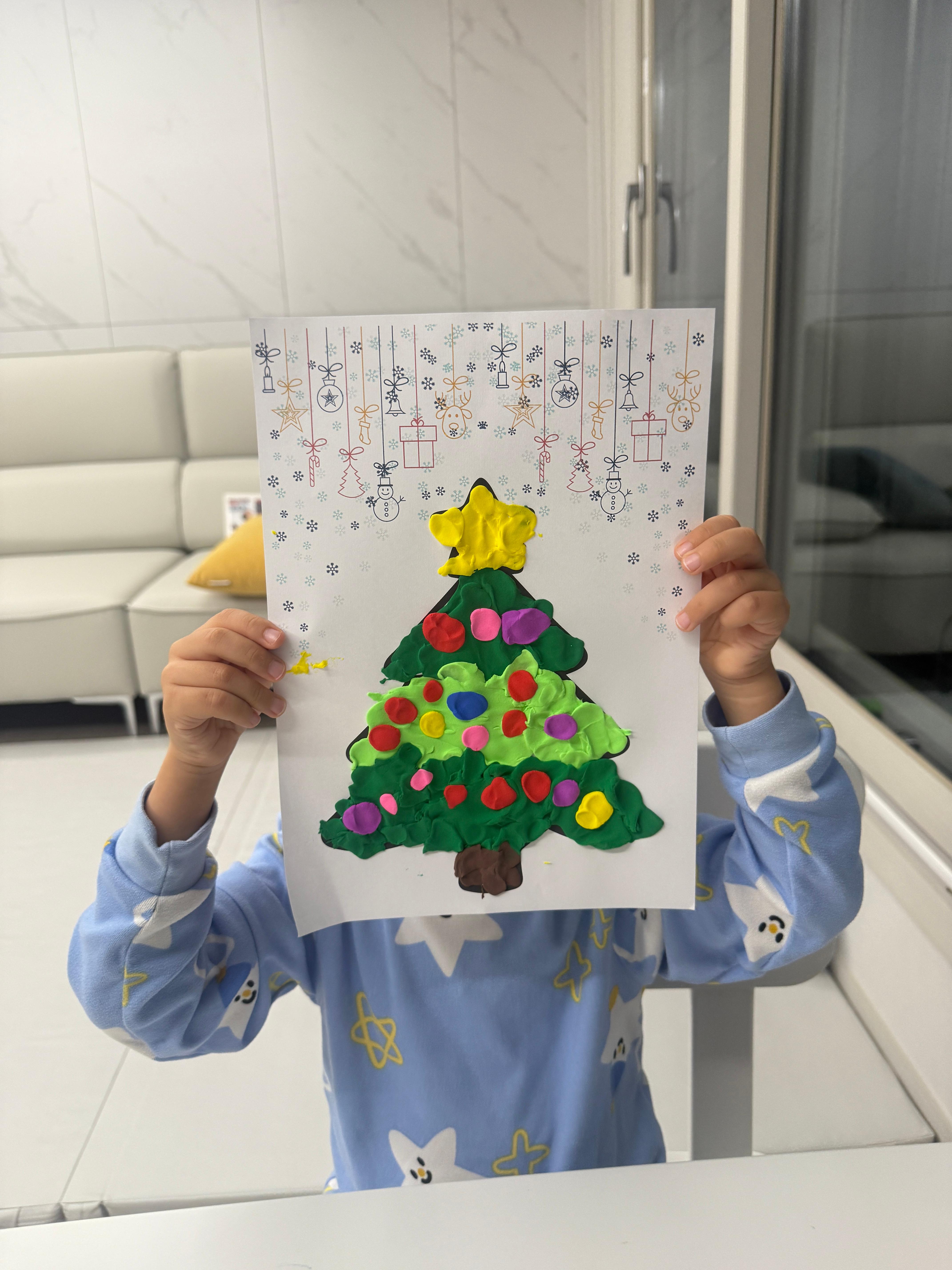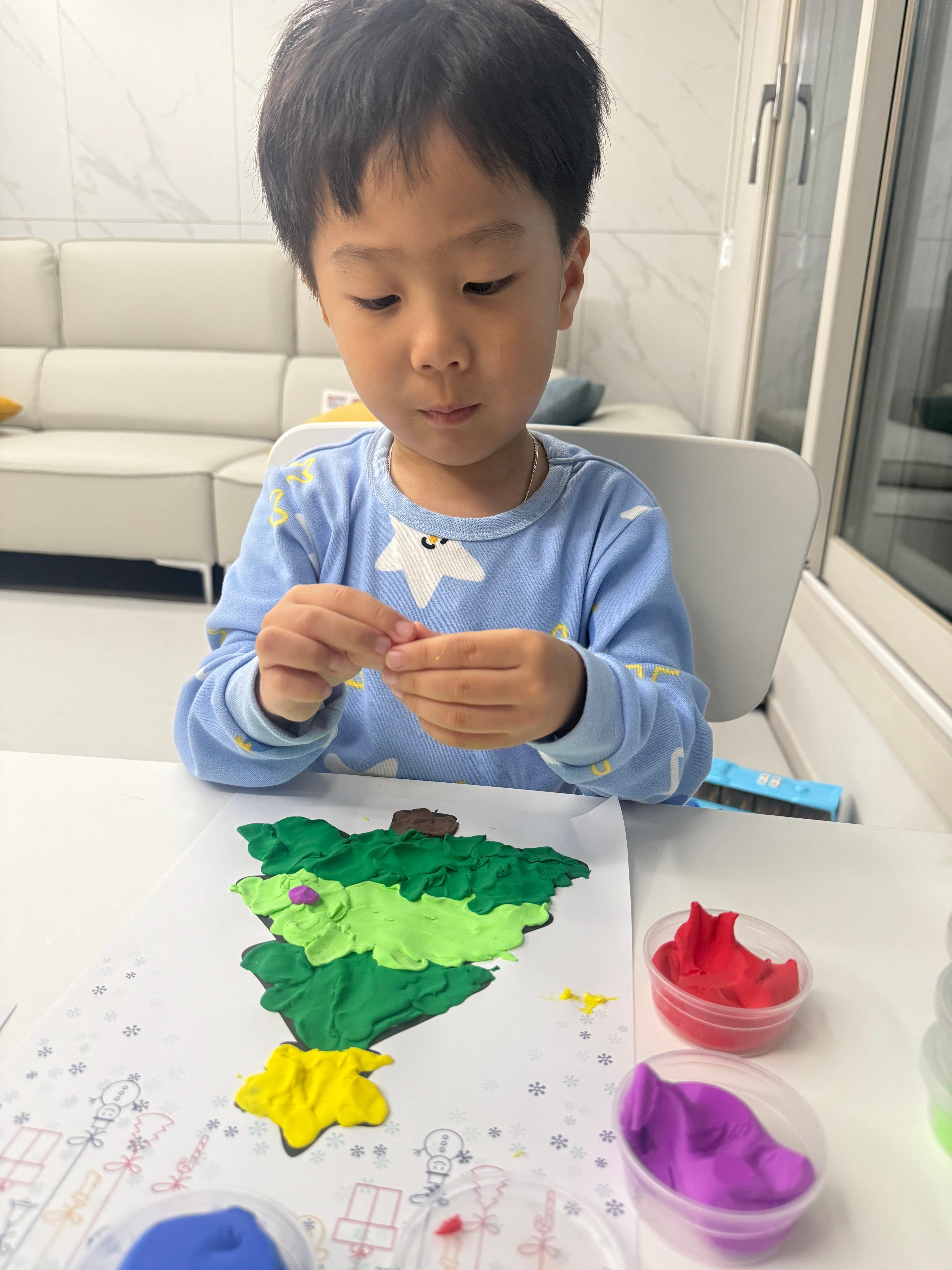 트리가 그려진 종이 위에 클레이를 올리고,