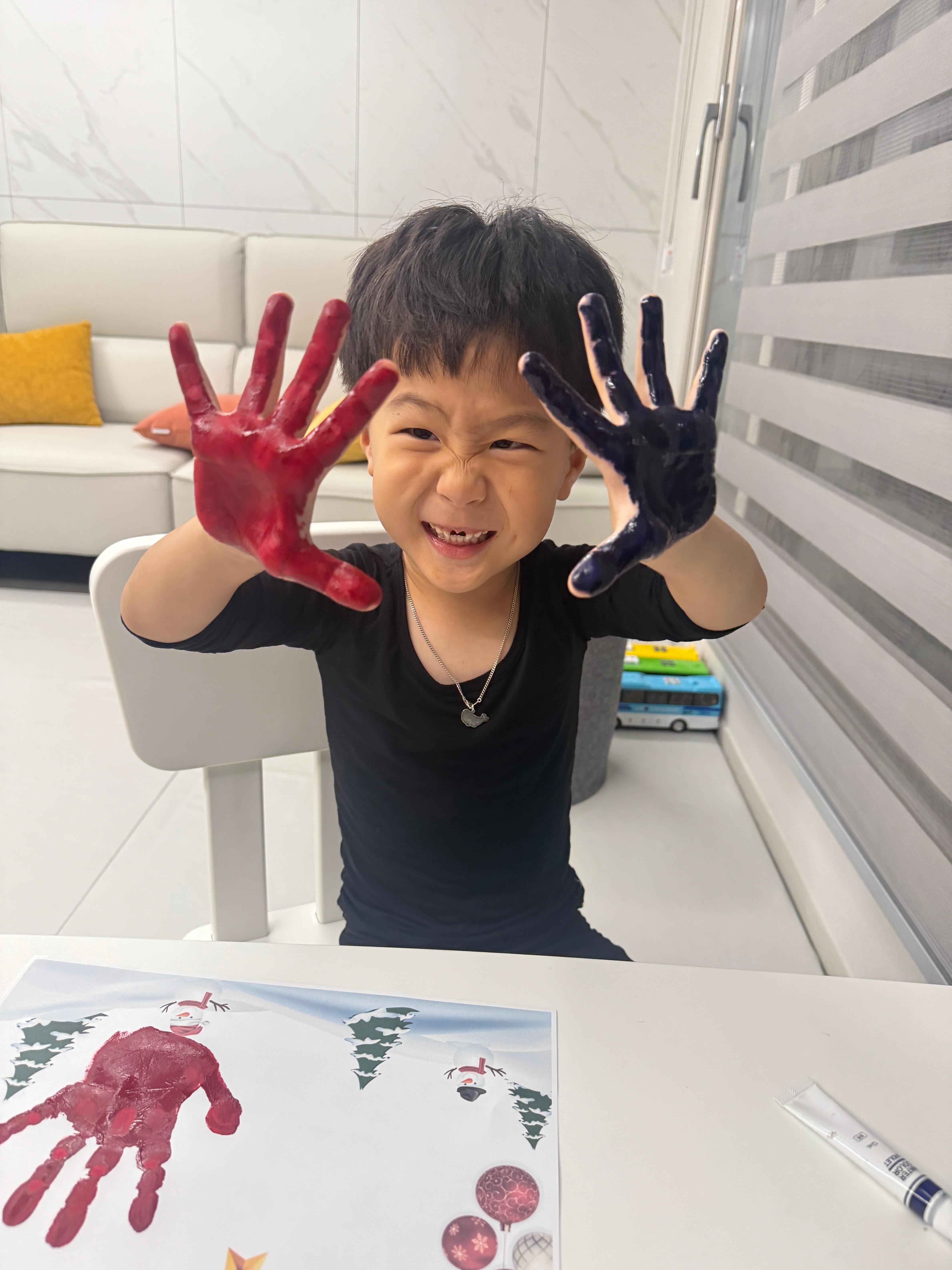 간지러운 물감이 손바닥, 발바닥에 닿으니 "아잉~ 간지러워!" 하면서