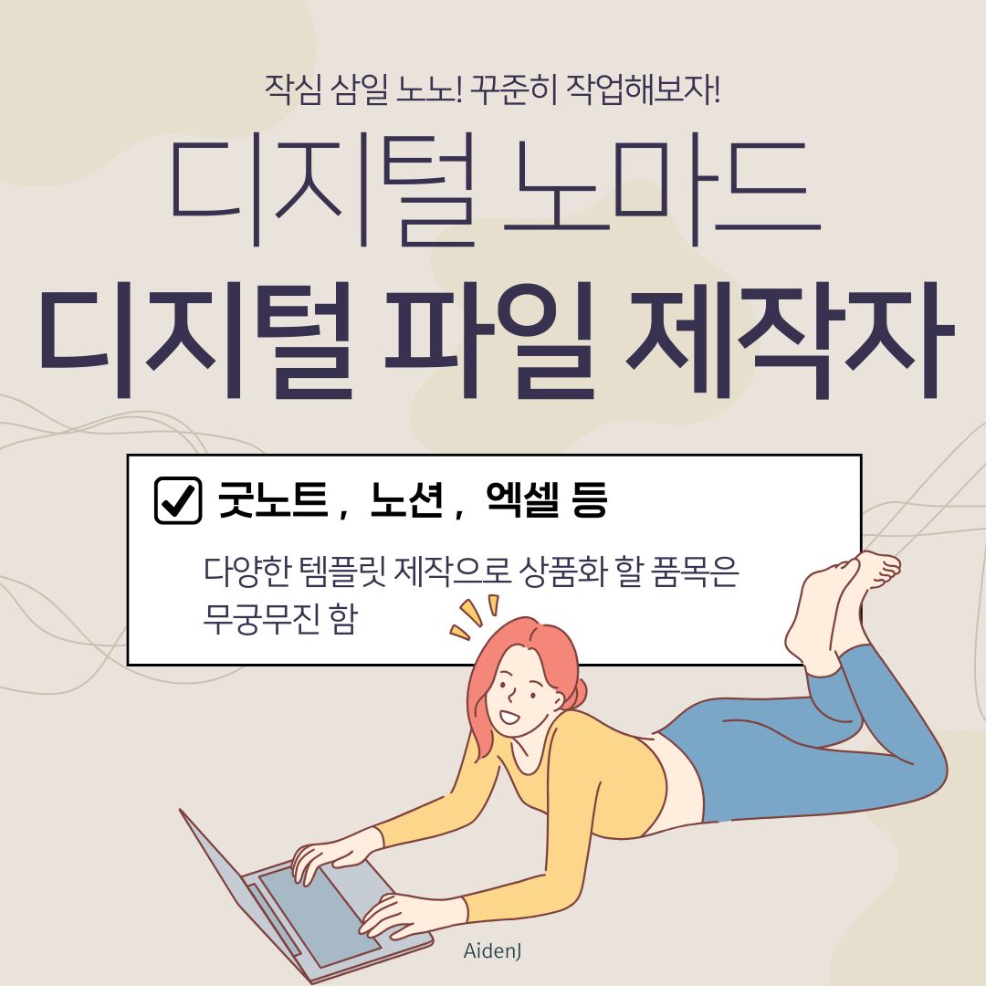 - 어떤 목표?: 내가 잘하는 것, 내가 필요한 것을 디지털 파일 형태의 템플릿으로 만들어서 판매하는 거예요. (예: 굿노트 다이어리, 노션 템플릿, 엑셀 가계부, 스터디 플래너 등)